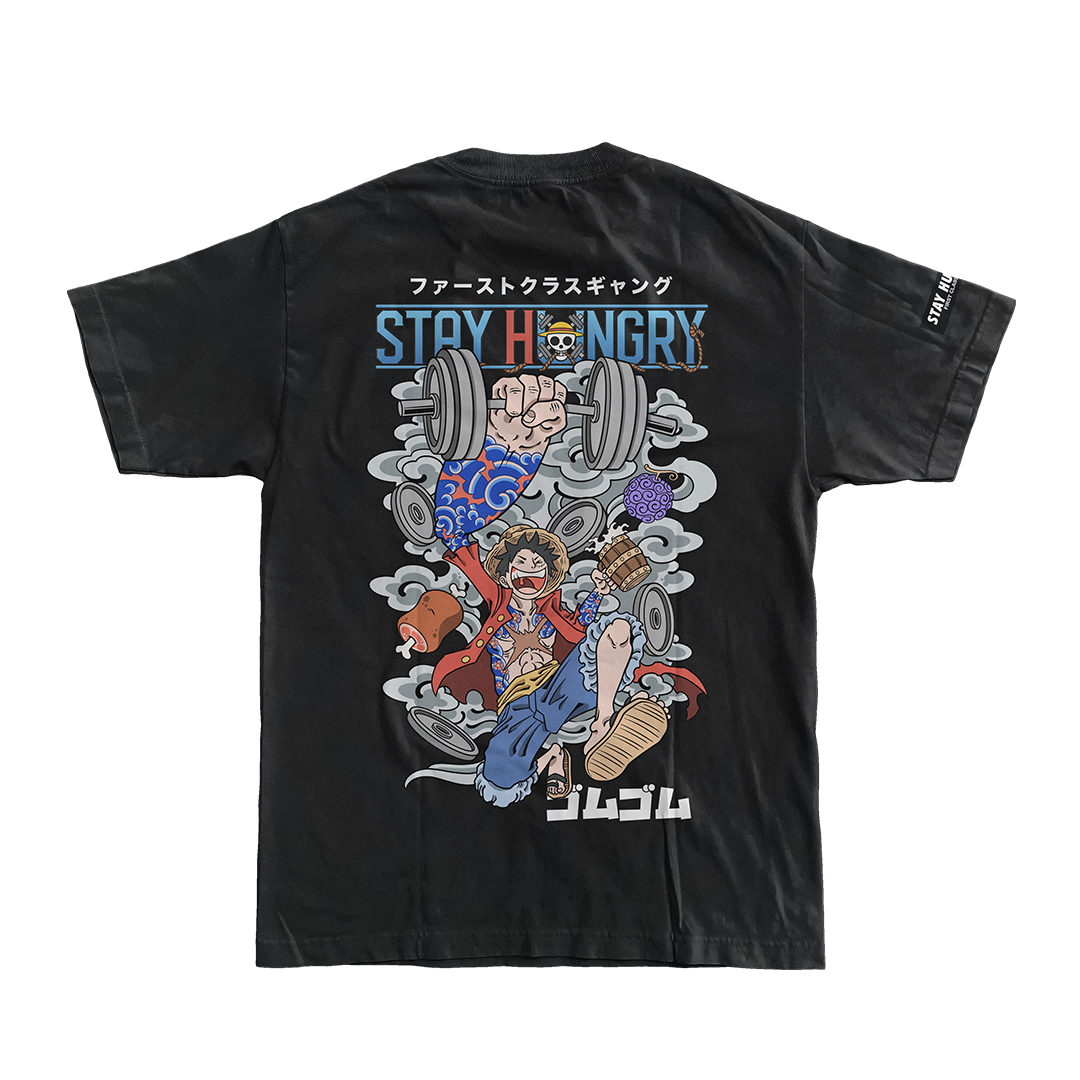 Inspirado en la mítica fruta del diablo de ONE PIECE que le da a Luffy su poder elástico, esta prenda no solo es un homenaje a los fanáticos del anime, sino también una invitación a mantenerte siempre hambriento de aventura, fuerza y superación.
