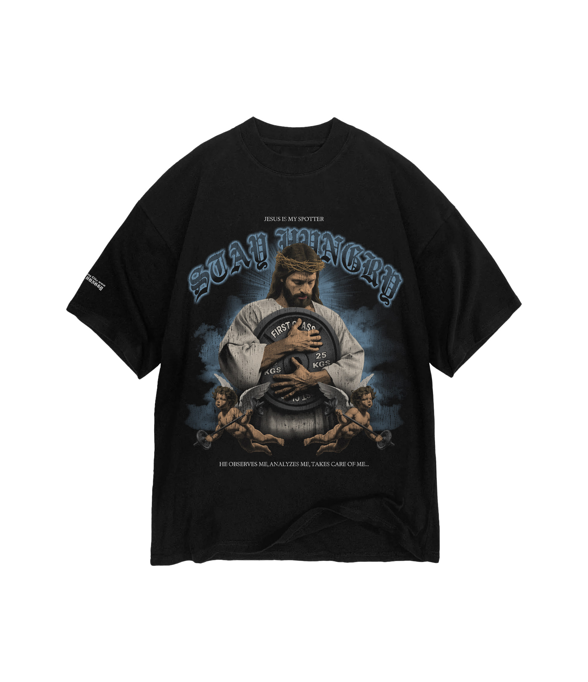JESUS IS MY SPOTTER - Premium Oversize Tee (HEAVYWEIGHT - Black)